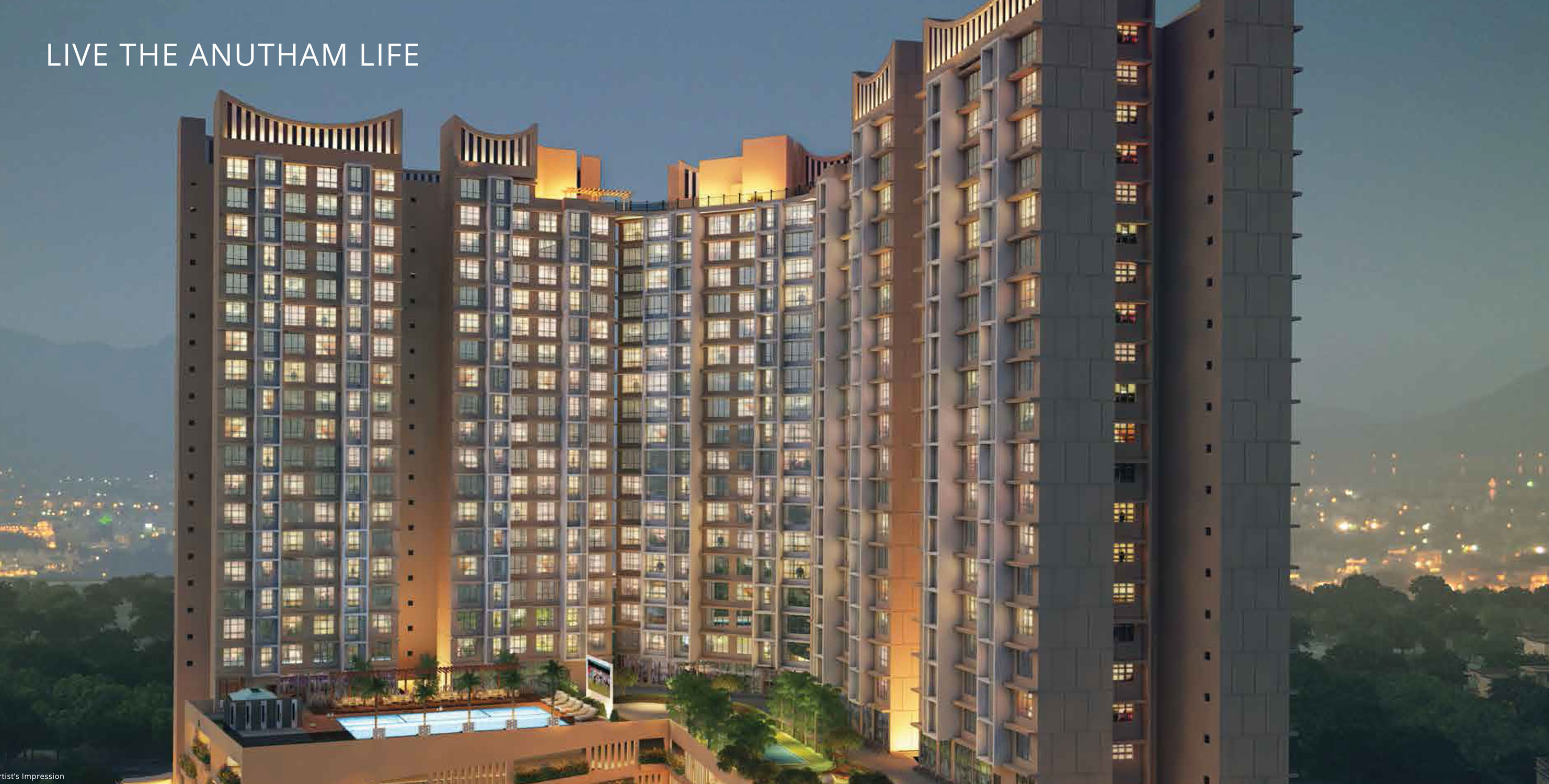 Anutham, an ultra-luxurious project nestled in the pristine suburb of Mumbai, Mulund, Offers a luxury to your eyes, scenic views. A lush green landscape sprawling until the horizon lies right in front of Anutham where the sky has a rendezvous with it. The view is completely uninterrupted until you blink your eyes.